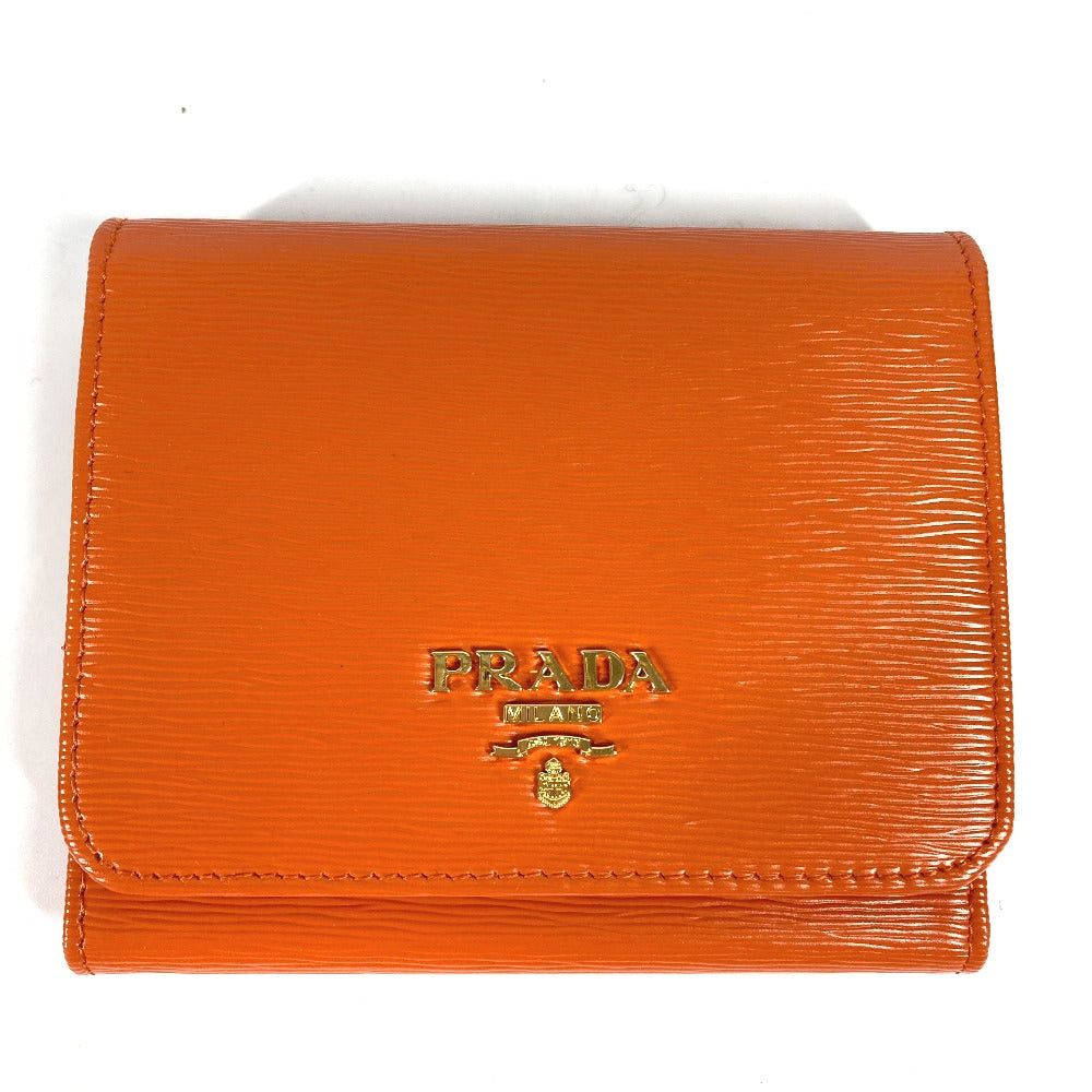 Prada Triangle Logo Plate Compact Wallet Threefold Leather Women